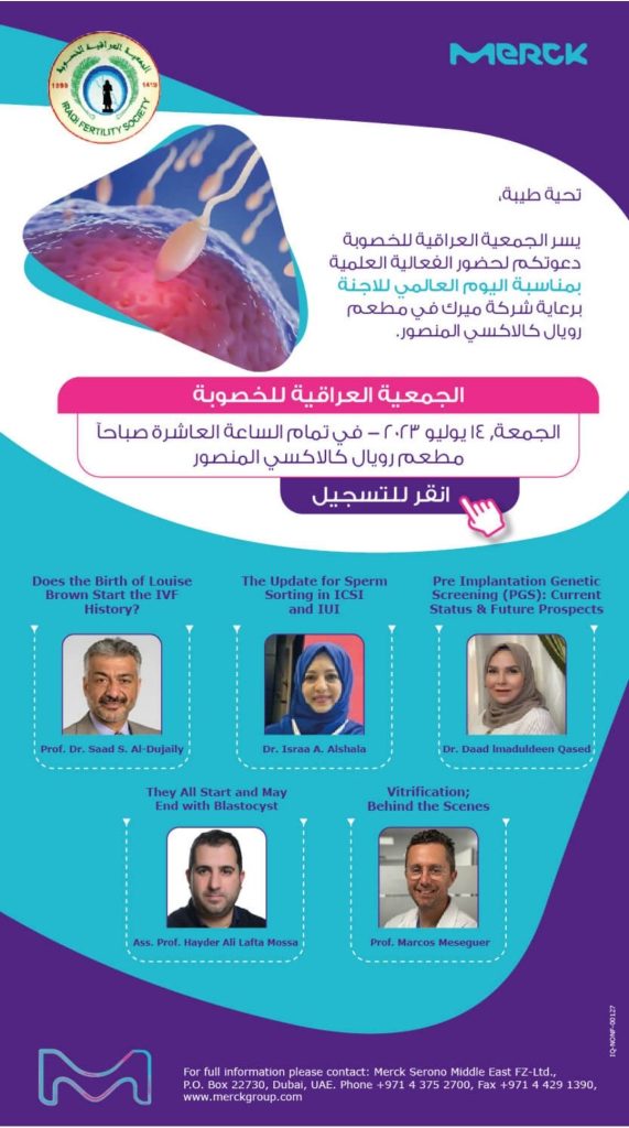 أقيم يوم الجمعة الموافق ١٤ تموز ٢٠٢٣..نشاط شهر تموز العلمي للجمعية العراقية للخصوبة و تزامن الحدث مع مناسبة يوم اختصاص الاجنة العالمي.